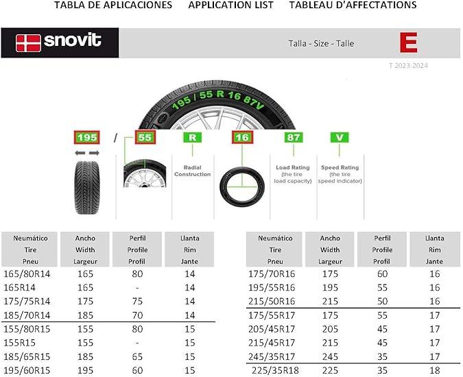 (14")> 165/80R14 - 165R14 - 175/75R14 - 185/70R14