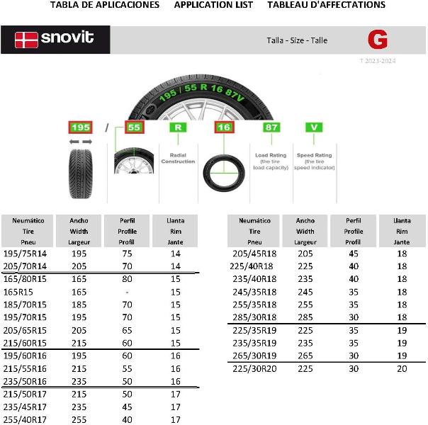 (16")> 195/60R16 - 215/55R16 - 235/50R16
